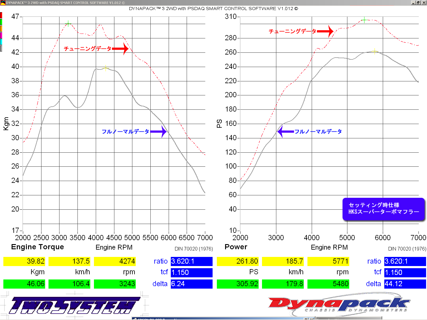 ※季節、気温、温度によって、パワー、トルクは変わりますので、ご了承下さい。